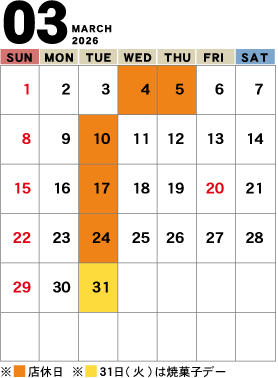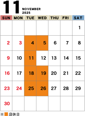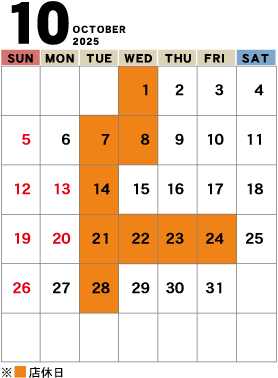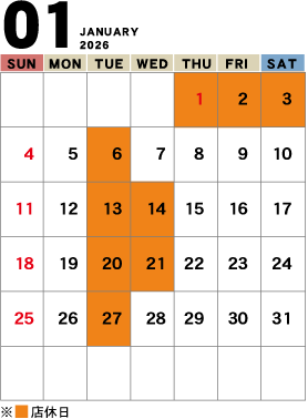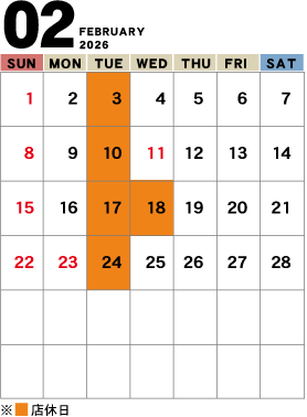 ※当店の定休日は基本的には火曜日ですが、イベント等により火曜日営業する場合もございます。